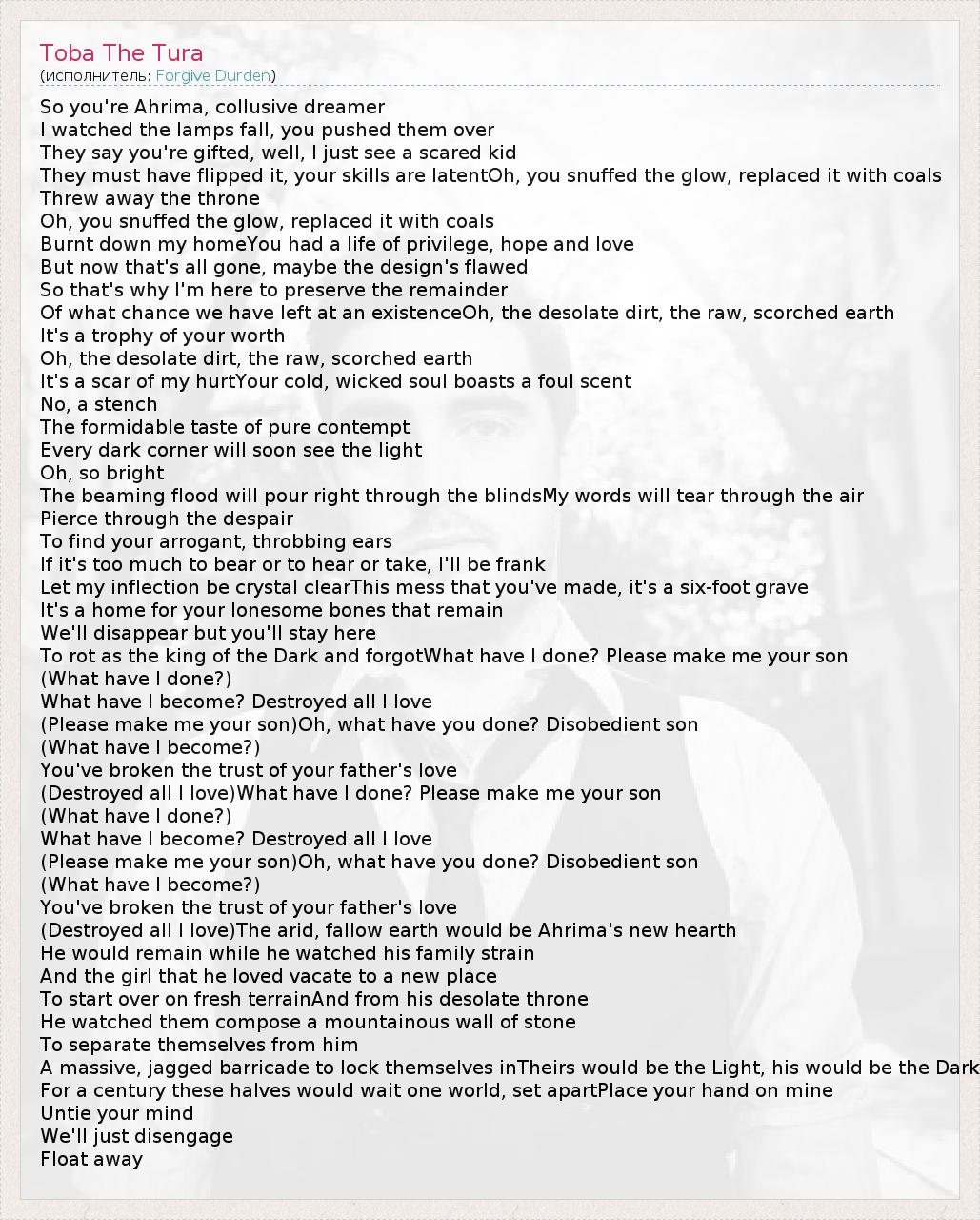 А как ты думаешь, о чем песня "Toba The Tura" ?