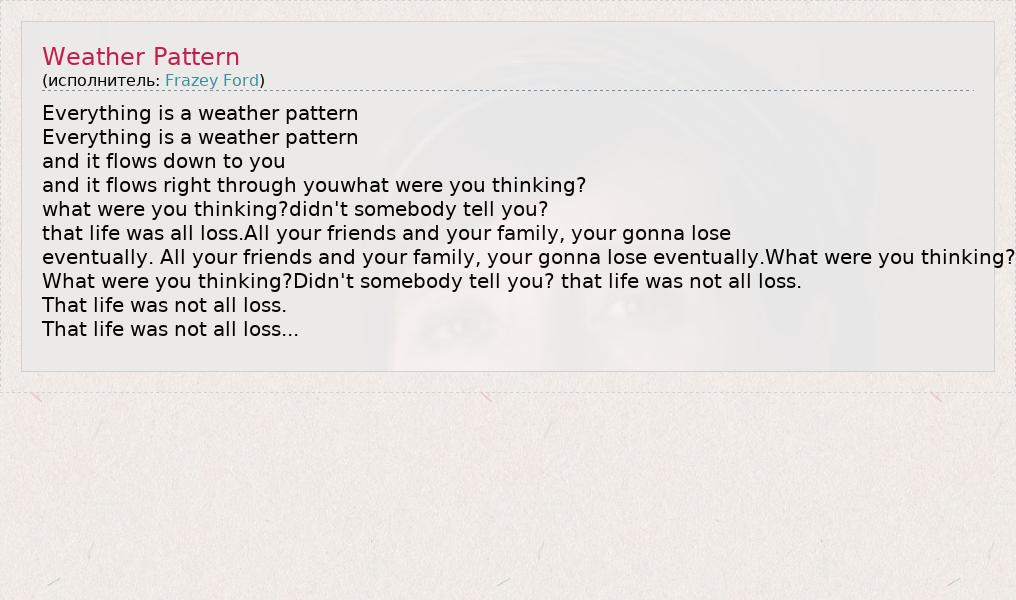 А как ты думаешь, о чем песня "Weather Pattern" ?