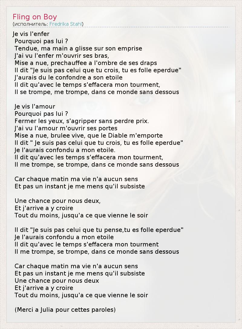 А как ты думаешь, о чем песня "Fling on Boy" ?
