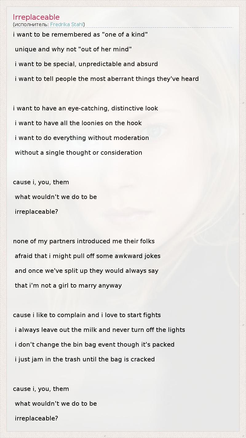 А как ты думаешь, о чем песня "Irreplaceable" ?