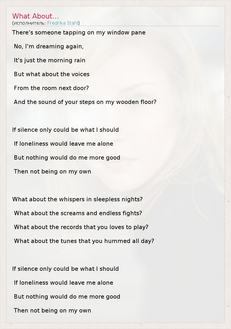 Это интересно:Фредрика Сталь (Fredrika Stahl, род. 24.10.1984) - шведская джазовая певица, автор песен. Играет на гитаре и пианино. Дебютный альбом выпустила в 2006 году.