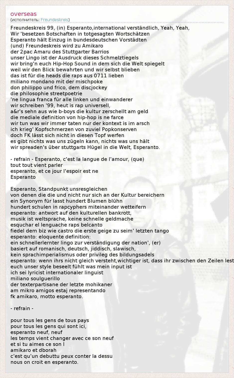 Freundeskreis 99, (in) Esperanto,international verständlich, Yeah, Yeah,