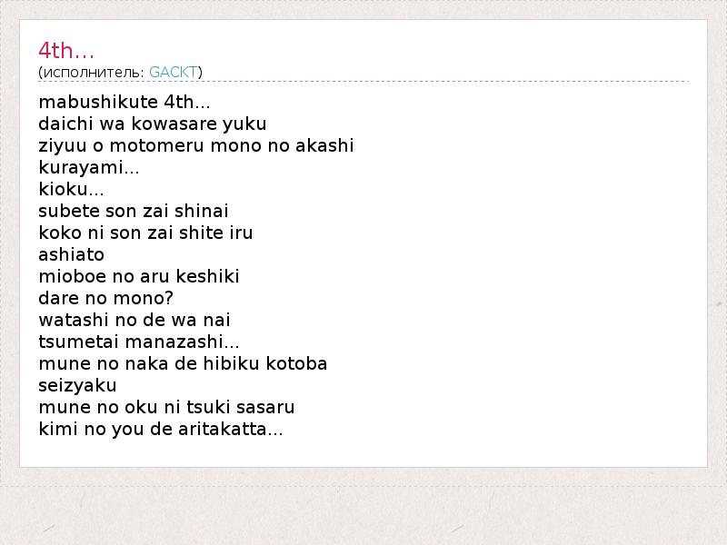 Это интересно:Гакуто Камуи, более известный под псеводнимом Gackt - один из наиболее известных во всем мире японских рок исполнителей с впечатляющей, многогранной карьерой. В Японии его диски, свыше 35 синглов и 8 альбомов, разошлись общим тиражом более чем 10 миллионов копий. Работы Gackt также продаются в Азии (Корее, Тайване, Гонконге и других азиатских регионах), Европе и Америке. В своей музыке Гакт соединяет... продолжение