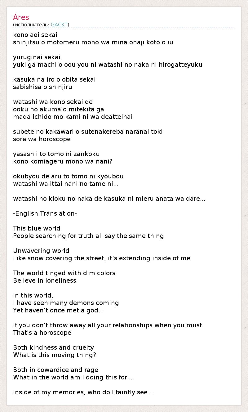 Это интересно:Гакуто Камуи, более известный под псеводнимом Gackt - один из наиболее известных во всем мире японских рок исполнителей с впечатляющей, многогранной карьерой. В Японии его диски, свыше 35 синглов и 8 альбомов, разошлись общим тиражом более чем 10 миллионов копий. Работы Gackt также продаются в Азии (Корее, Тайване, Гонконге и других азиатских регионах), Европе и Америке. В своей музыке Гакт соединяет... продолжение