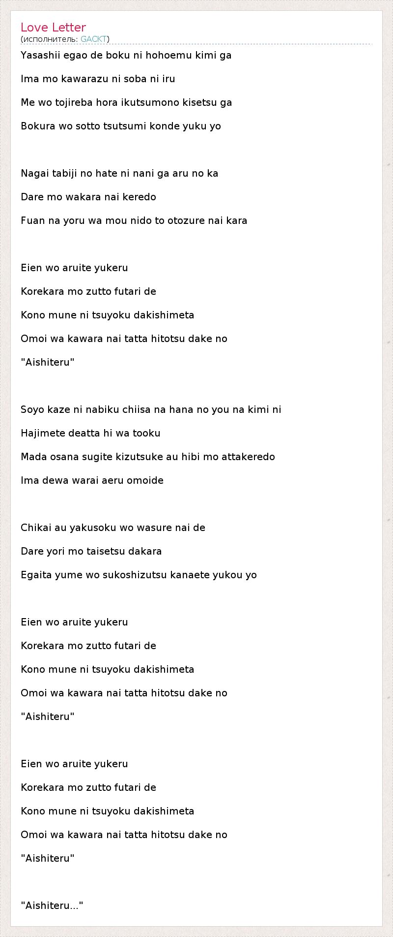Это интересно:Гакуто Камуи, более известный под псеводнимом Gackt - один из наиболее известных во всем мире японских рок исполнителей с впечатляющей, многогранной карьерой. В Японии его диски, свыше 35 синглов и 8 альбомов, разошлись общим тиражом более чем 10 миллионов копий. Работы Gackt также продаются в Азии (Корее, Тайване, Гонконге и других азиатских регионах), Европе и Америке. В своей музыке Гакт соединяет... продолжение