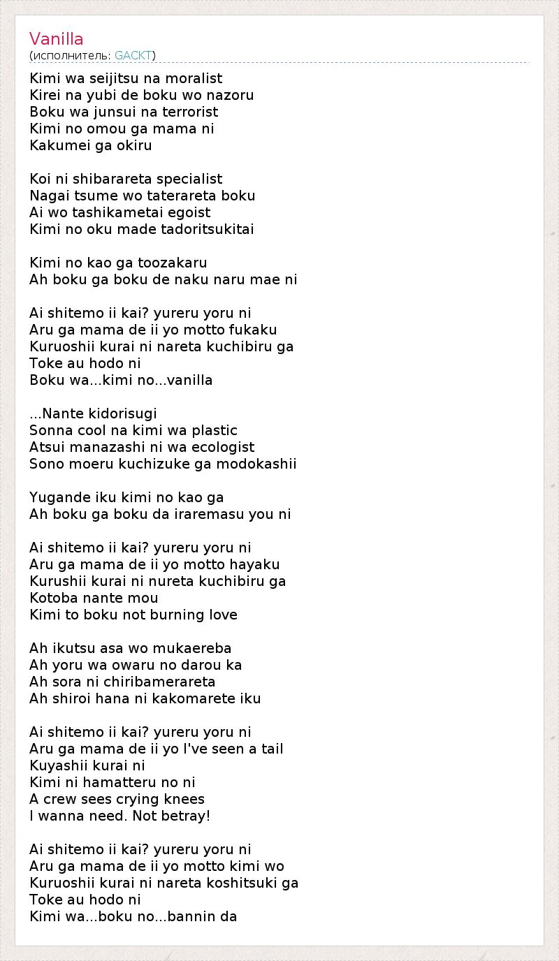 А как ты думаешь, о чем песня "Vanilla" ?