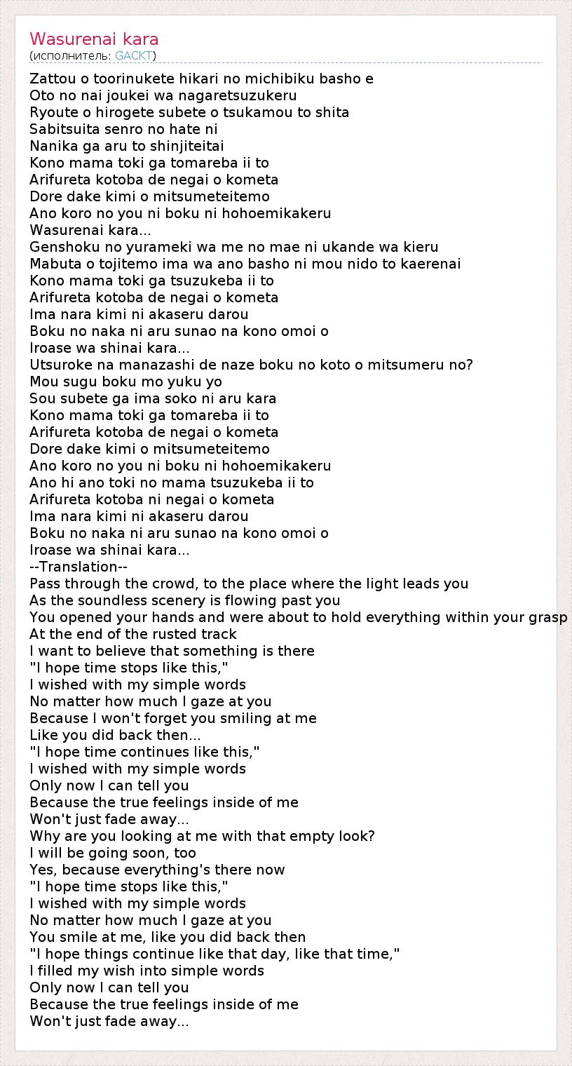А как ты думаешь, о чем песня "Wasurenai kara" ?