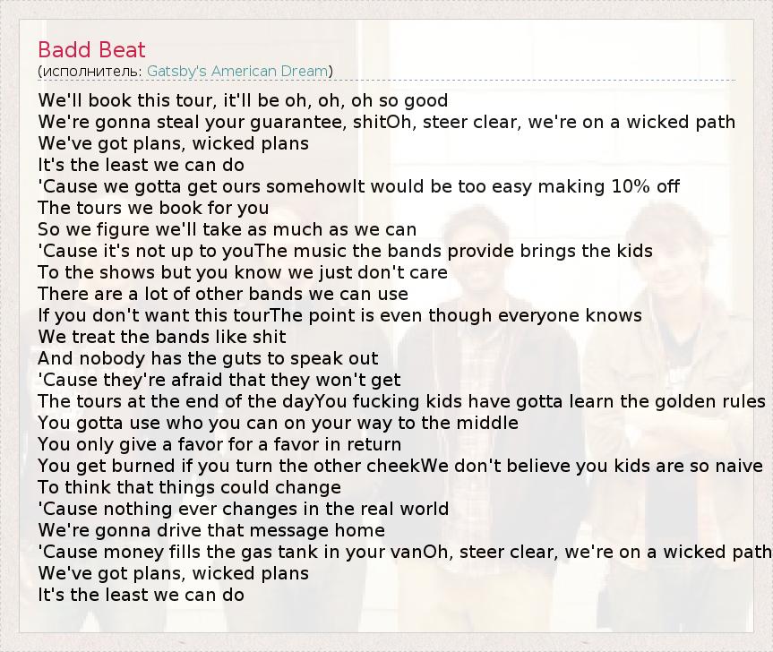А как ты думаешь, о чем песня "Badd Beat" ?