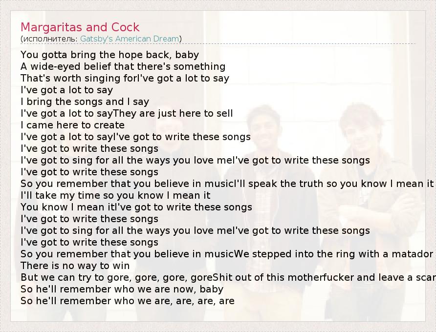 А как ты думаешь, о чем песня "Margaritas and Cock" ?