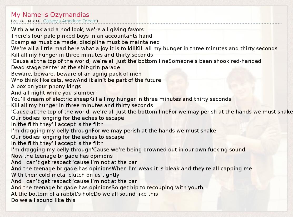 А как ты думаешь, о чем песня "My Name Is Ozymandias" ?