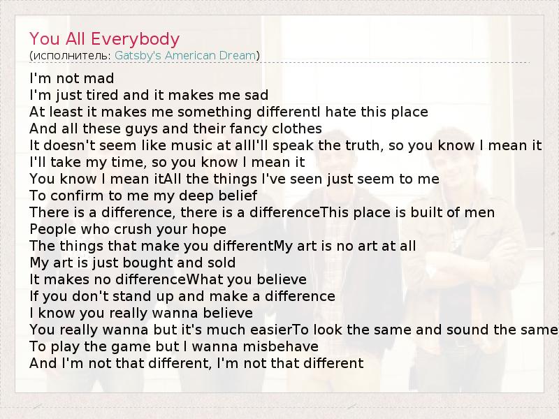 А как ты думаешь, о чем песня "You All Everybody" ?