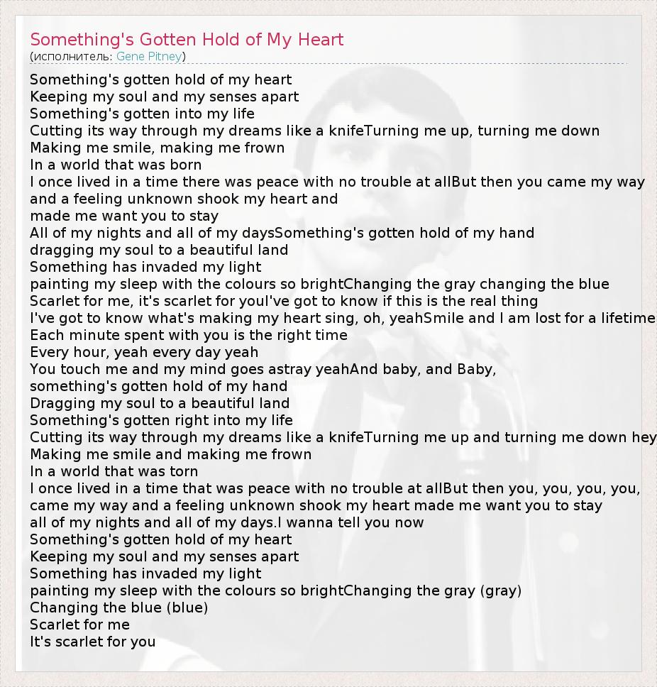 А как ты думаешь, о чем песня "Something's Gotten Hold of My Heart" ?