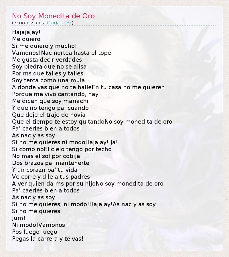 А как ты думаешь, о чем песня "No Soy Monedita de Oro" ?
