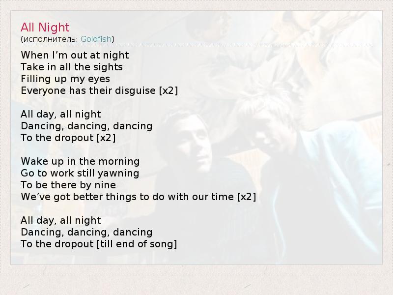 А как ты думаешь, о чем песня "All Night" ?