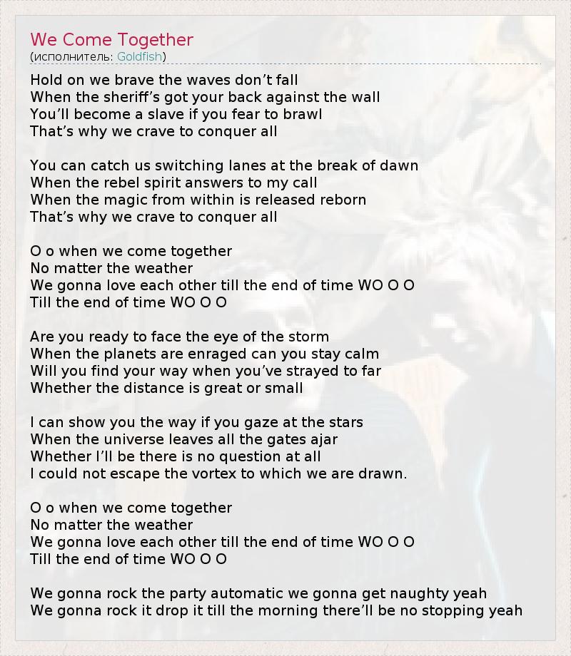 А как ты думаешь, о чем песня "We Come Together" ?