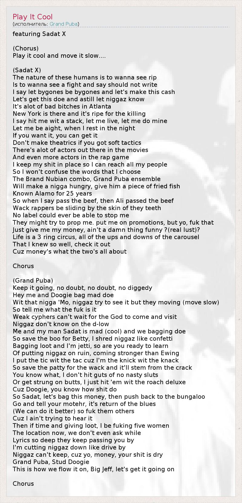 Это интересно:Grand Puba - настоящее имя Maxwell Dixon, родился 4 марта 1966 года, в районе Нью-Рошель, города Нью-Йорк - известен, как основатель рэп группы Brand Nubian.Grand Puba дебютировал в составе рэп группы Masters of Ceremony. Их единственный альбом "Dynamite", выпущенный в 1988 году, был высоко оценен критиками, но из-за плохих продаж альбома группа вскоре распалась.После этого Grand Puba основал свою рэп группу Brand Nubian, которая... продолжение