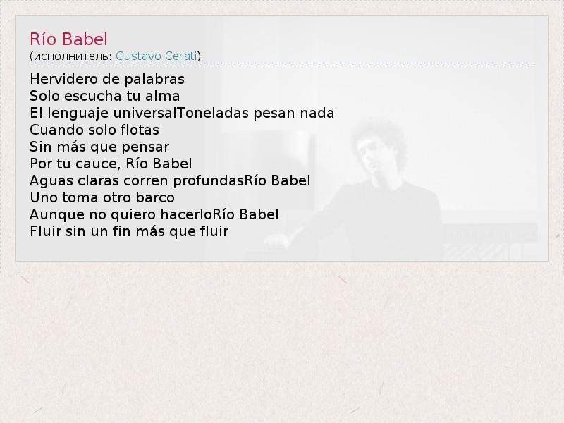 А как ты думаешь, о чем песня "Río Babel" ?