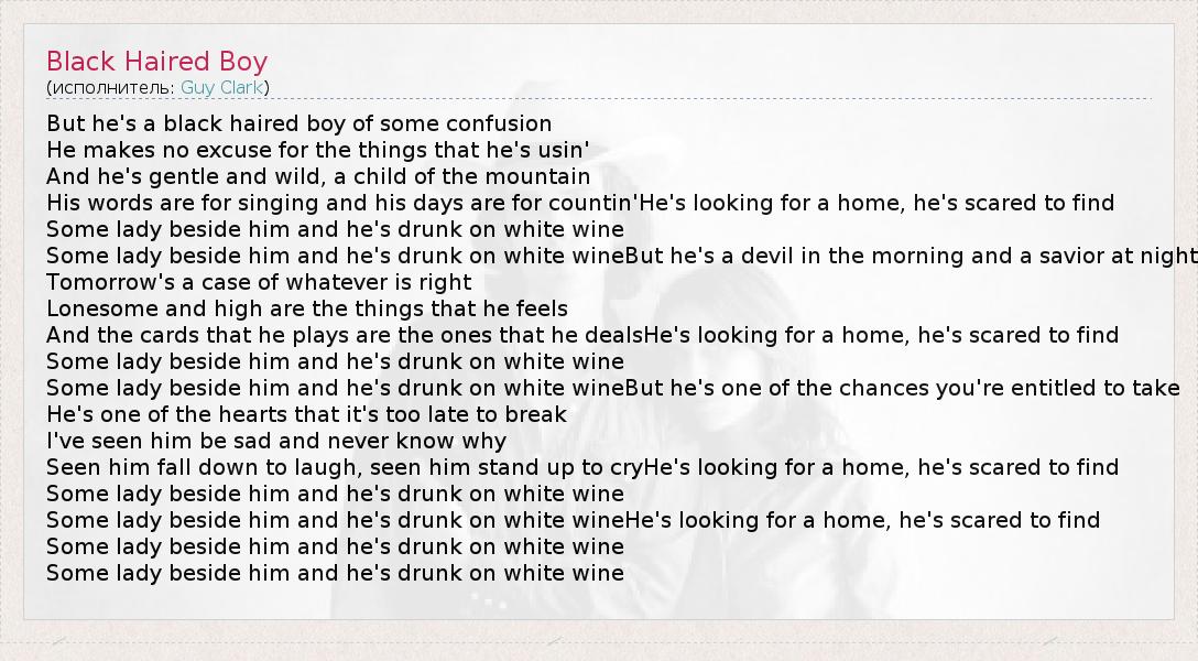 А как ты думаешь, о чем песня "Black Haired Boy" ?