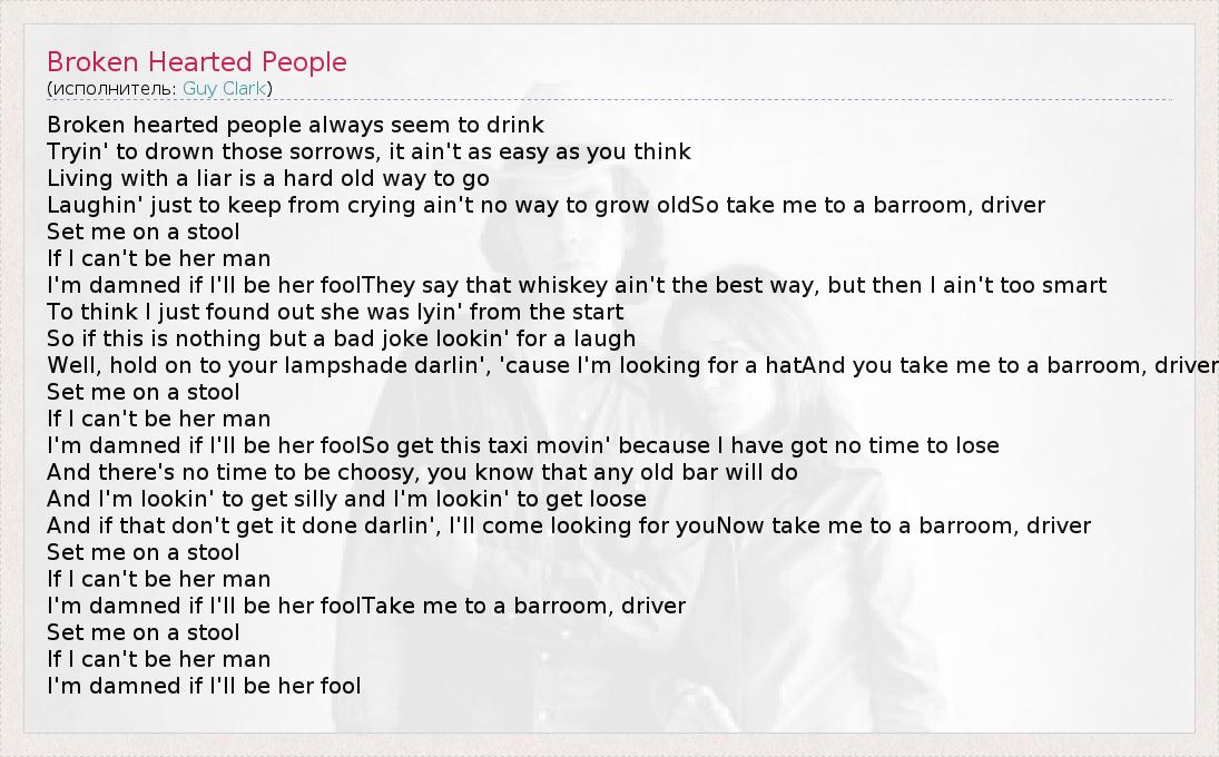 А как ты думаешь, о чем песня "Broken Hearted People" ?