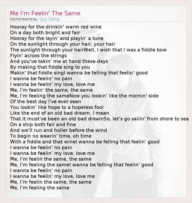 А как ты думаешь, о чем песня "Me I'm Feelin' The Same" ?