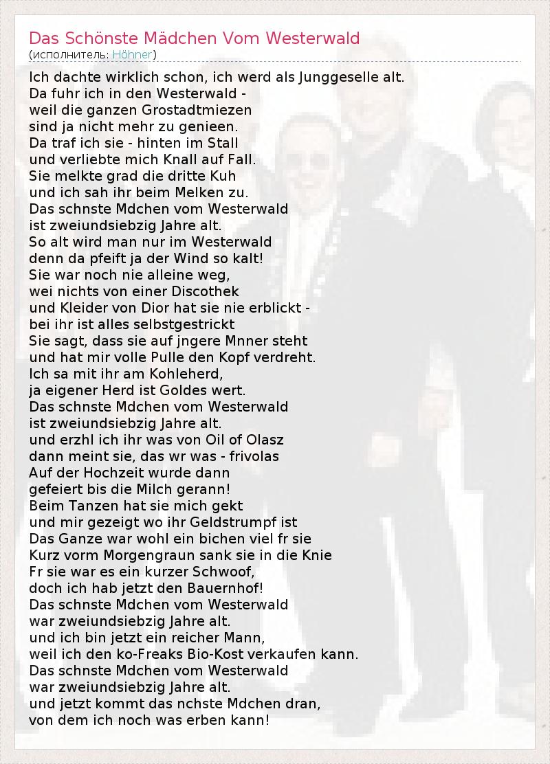 А как ты думаешь, о чем песня "Das Schönste Mädchen Vom Westerwald" ?