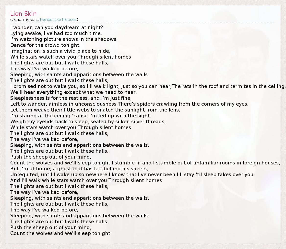 А как ты думаешь, о чем песня "Lion Skin" ?