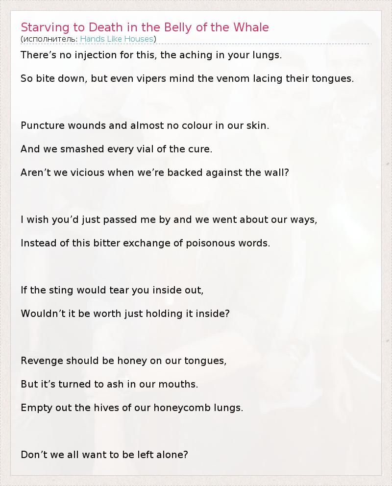 А как ты думаешь, о чем песня "Starving to Death in the Belly of the Whale" ?