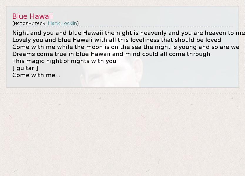А как ты думаешь, о чем песня "Blue Hawaii" ?