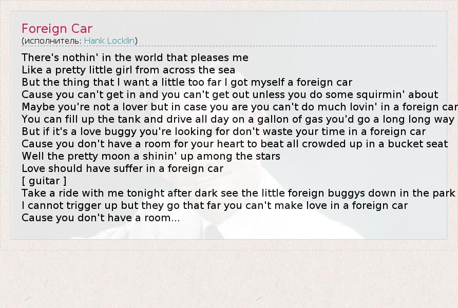 А как ты думаешь, о чем песня "Foreign Car" ?