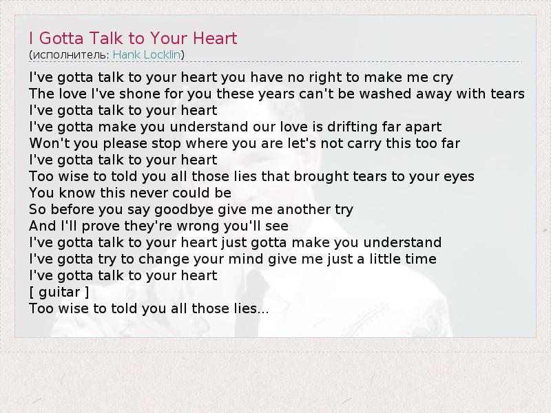 ГлавнаяИсполнителиHank LocklinI Gotta Talk to Your Heart