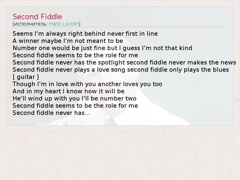 А как ты думаешь, о чем песня "Second Fiddle" ?