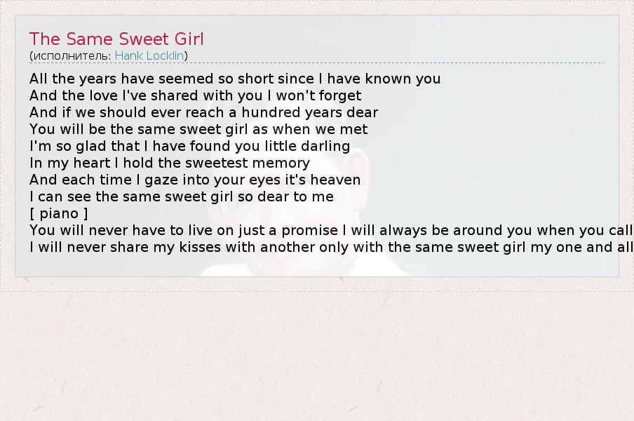 А как ты думаешь, о чем песня "The Same Sweet Girl" ?
