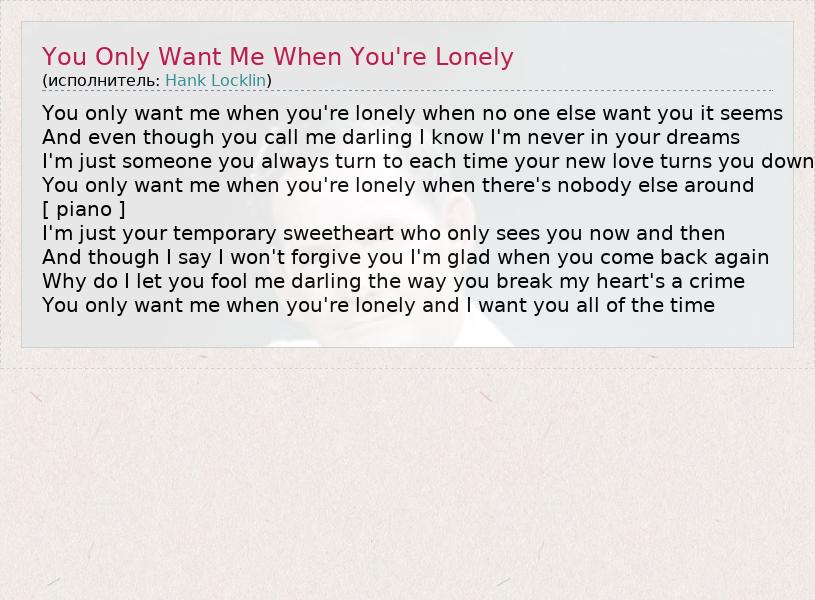 ГлавнаяИсполнителиHank LocklinYou Only Want Me When You're Lonely