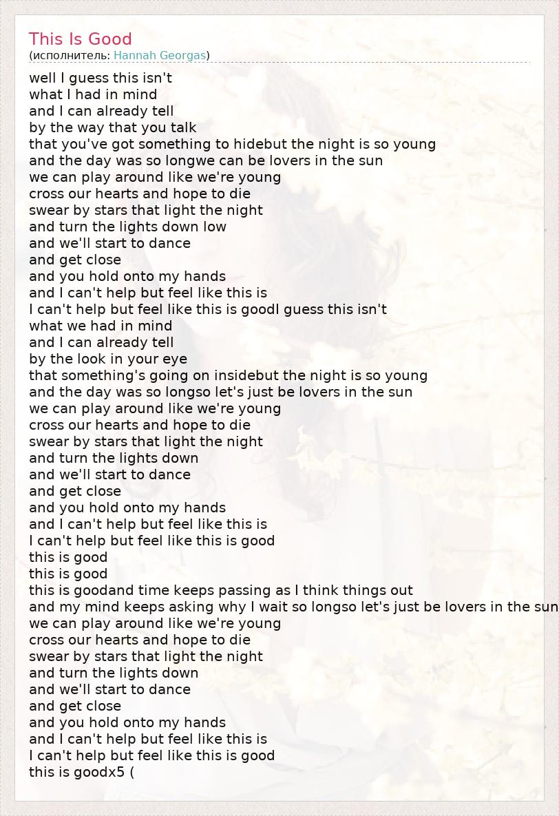 well I guess this isn't what I had in mind and I can already tell by the way that you talk that you've got something to hidebut the night is so young and the day was so longwe can be lovers in the sun we can play around like we're young cross our hearts and hope to die swear by stars that light the night and turn the lights down low and we'll start to dance and get close and you hold onto my hands and I can't help but feel like this is I can't help but feel like this is goodI guess this isn't what we had in mind and I can already tell by the look in your eye that something's going on insidebut the night is so young and the day was so longso let's just be lovers in the sun we can play around like we're young cross our hearts and hope to die swear by stars that light the night and turn the lights down and we'll start to dance and get close and you hold onto my hands and I can't help but feel like this is I can't help but feel like this is good this is good this is good this is goodand time keeps passing as I think things out and my mind keeps asking why I wait so longso let's just be lovers in the sun we can play around like we're young cross our hearts and hope to die swear by stars that light the night and turn the lights down and we'll start to dance and get close and you hold onto my hands and I can't help but feel like this is I can't help but feel like this is good this is goodx5 (