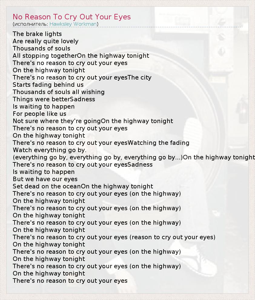 А как ты думаешь, о чем песня "No Reason To Cry Out Your Eyes" ?