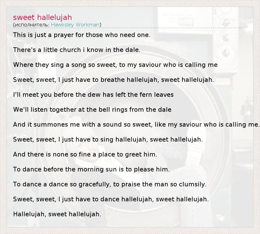 А как ты думаешь, о чем песня "sweet hallelujah" ?