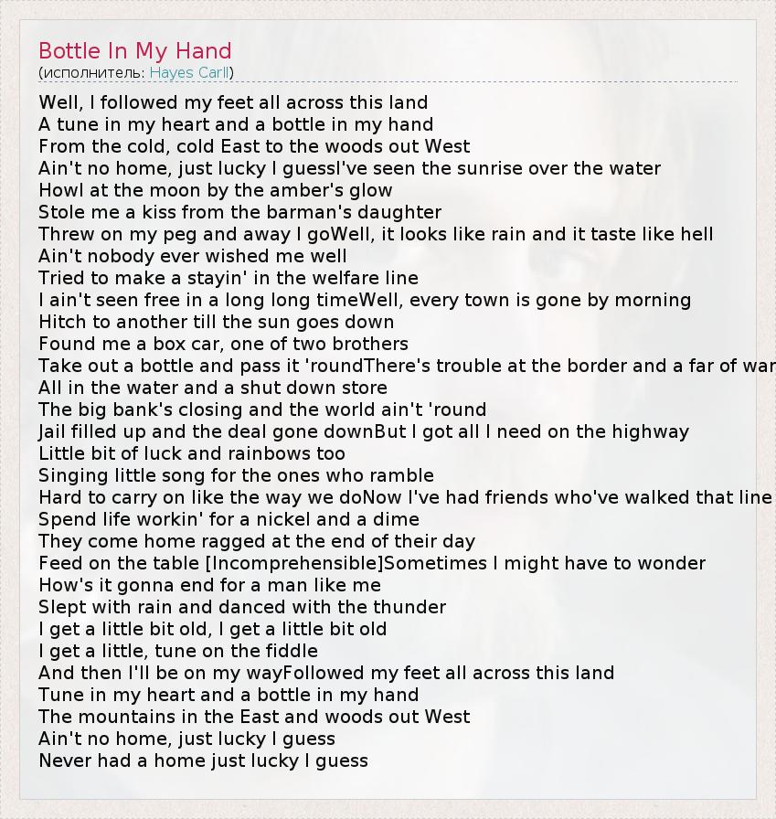 А как ты думаешь, о чем песня "Bottle In My Hand" ?
