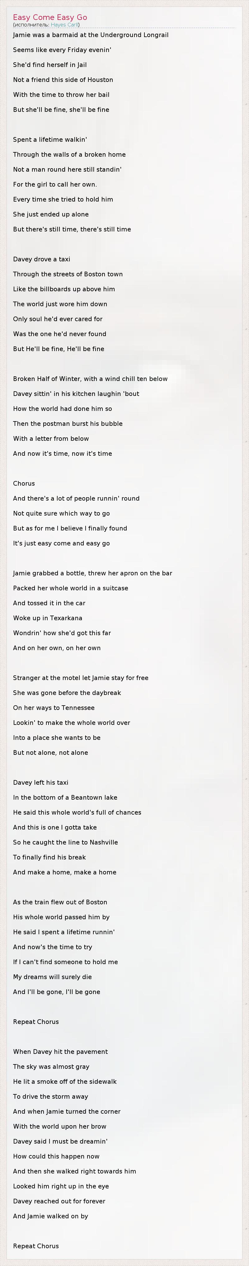 А как ты думаешь, о чем песня "Easy Come Easy Go" ?