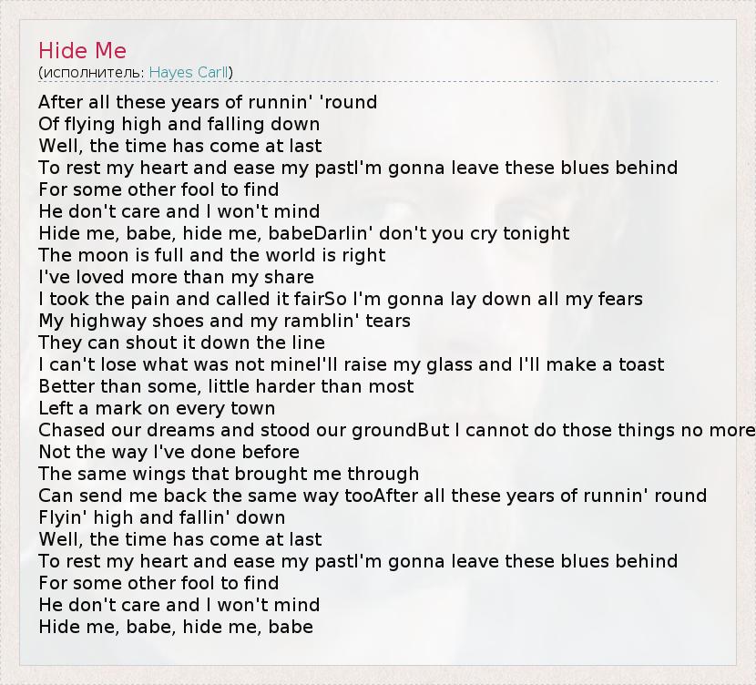 Hide me, babe, hide me, babeDarlin' don't you cry tonight