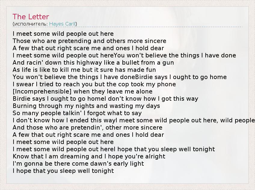 Это интересно:Джошуа Хейс Карлл (Joshua Hayes Carll), известный как Хейс Карлл (Hayes Carll) – это автор и исполнитель песен из Вудлендса, штат Техас. В настоящее время он подписал контракт с Lost Highway Records. Первая гитара у Хейса появилась в возрасте 15 лет, он начал писать свои песни, вдохновленный творчеством Боба Дилана (Bob Dylan), Криса Кристофферсона (Kris Kristofferson), Джона Прайна (John Prine), Джека Керуака (Jack Kerouac), а также фильмом... продолжение