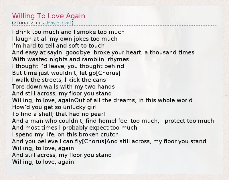 А как ты думаешь, о чем песня "Willing To Love Again" ?
