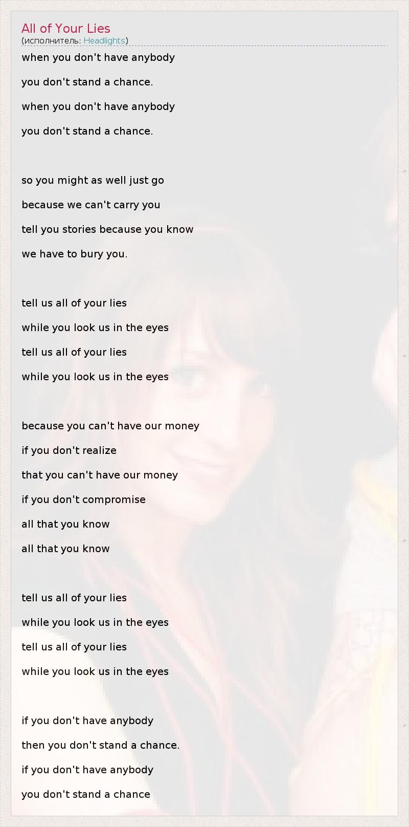 А как ты думаешь, о чем песня "All of Your Lies" ?