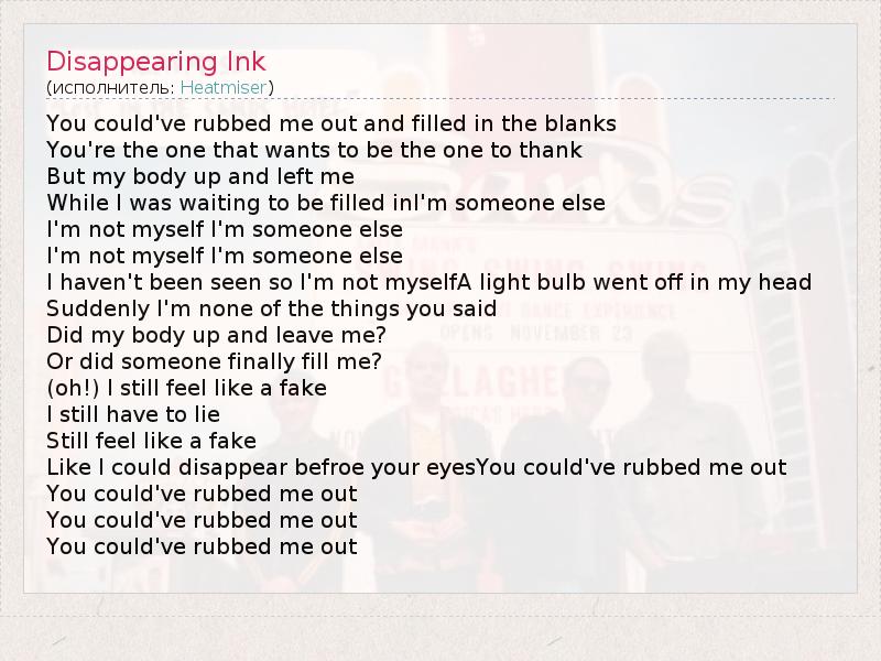 А как ты думаешь, о чем песня "Disappearing Ink" ?