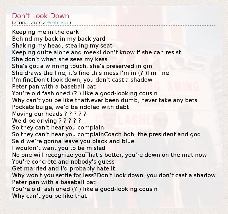 А как ты думаешь, о чем песня "Don't Look Down" ?