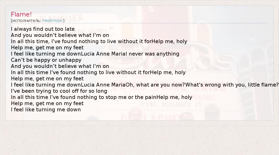 I feel like turning me downLucia Anne MariaOh, what are you now?What's wrong with you, little flame?