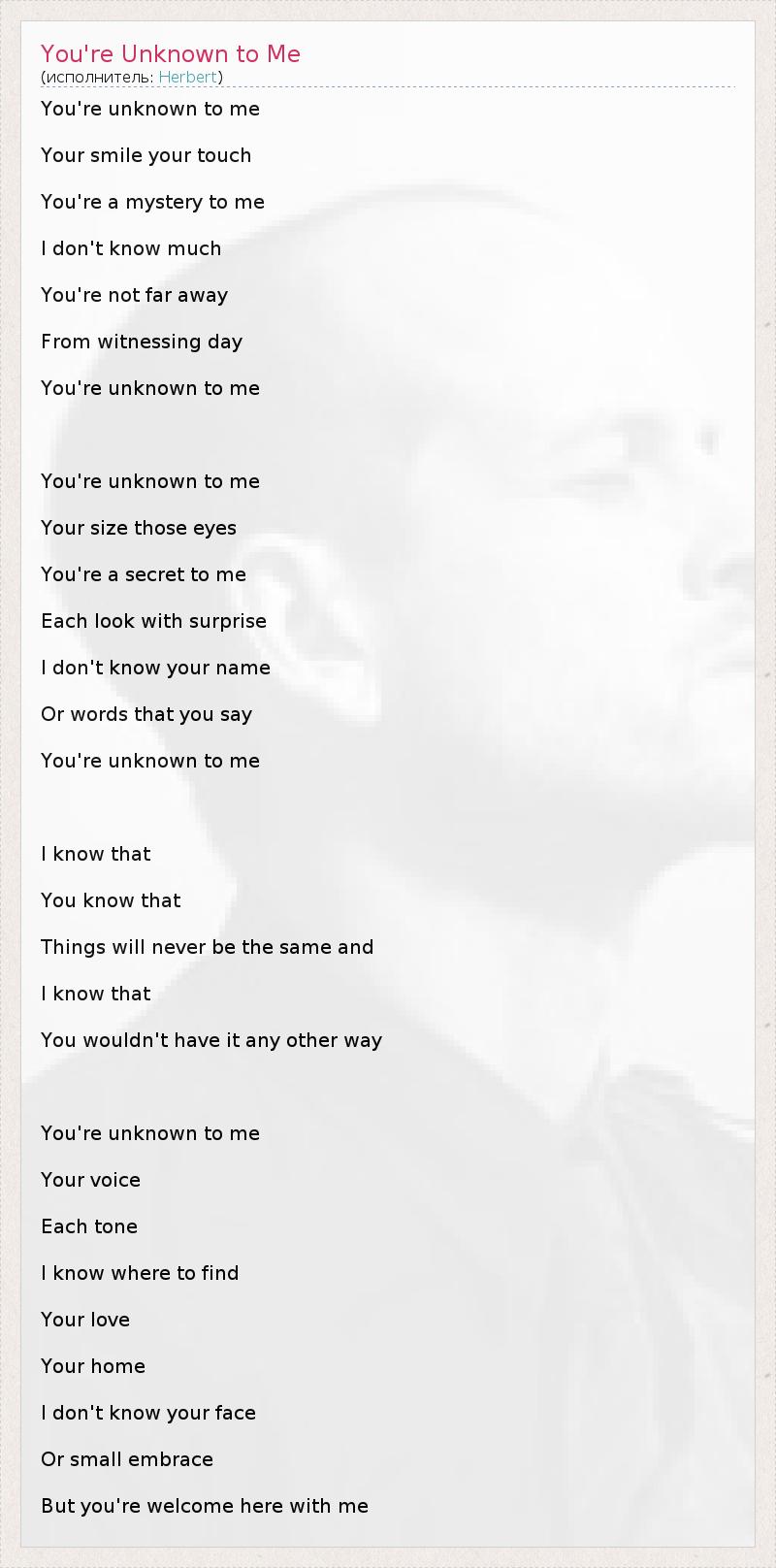 А как ты думаешь, о чем песня "You're Unknown to Me" ?