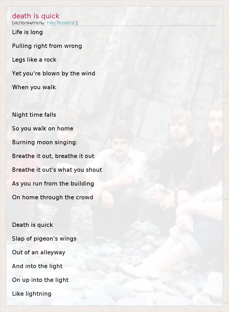 А как ты думаешь, о чем песня "death is quick" ?