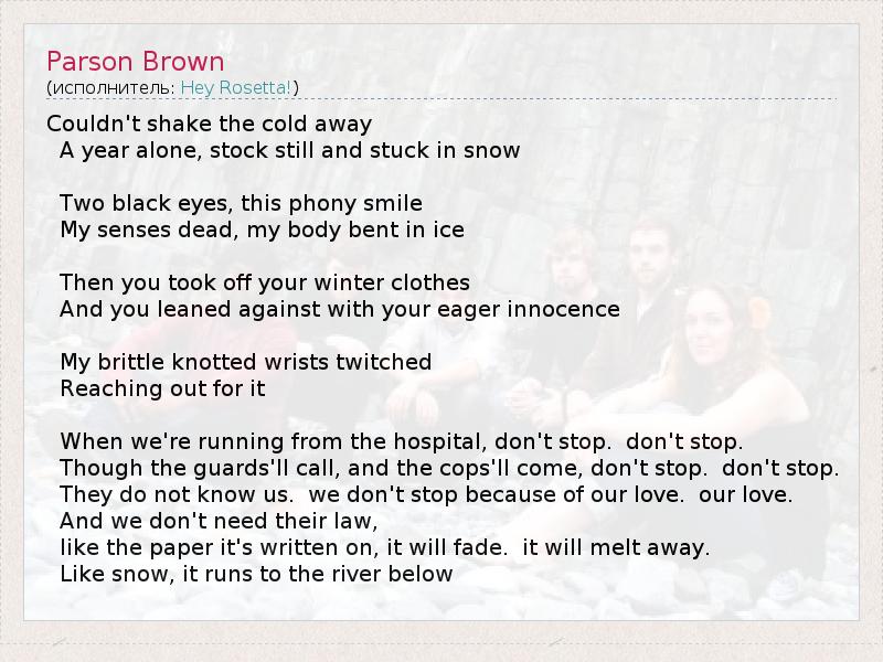 А как ты думаешь, о чем песня "Parson Brown" ?