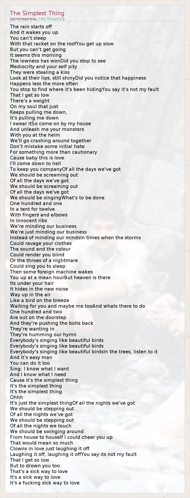 А как ты думаешь, о чем песня "The Simplest Thing" ?