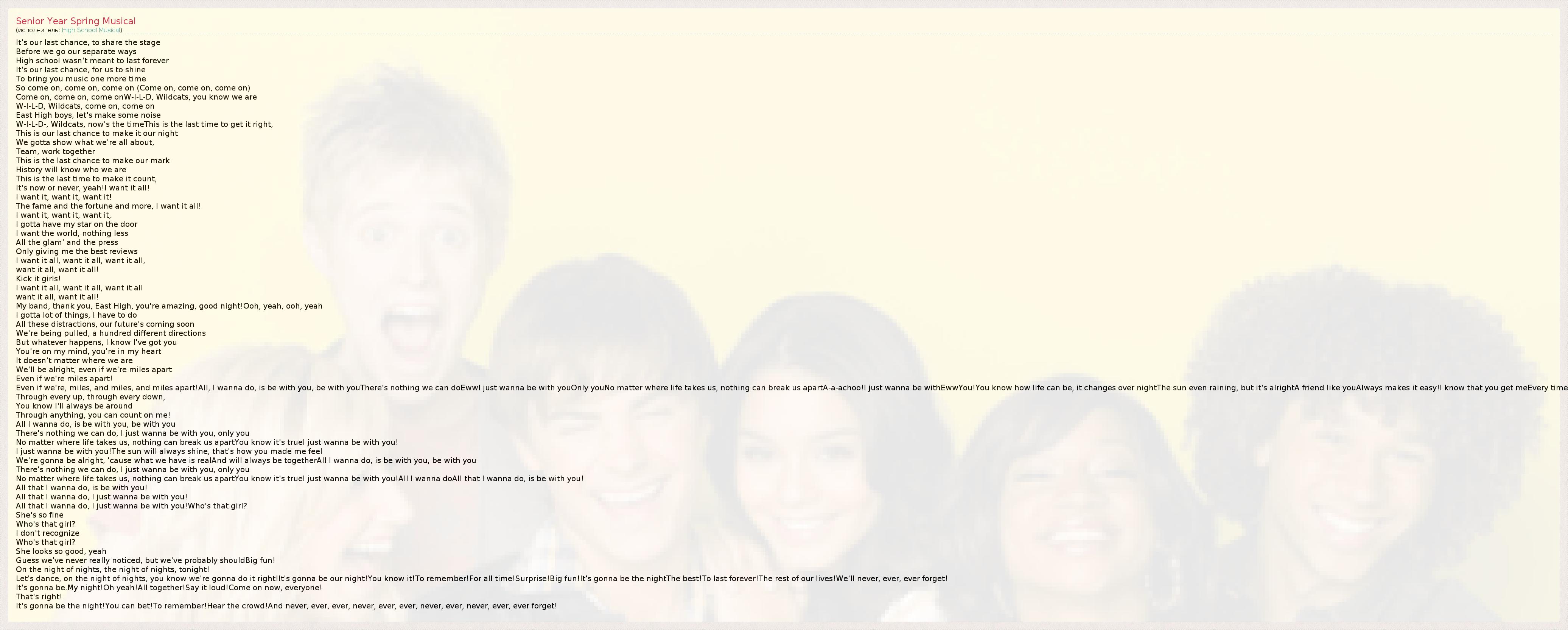 А как ты думаешь, о чем песня "Senior Year Spring Musical" ?